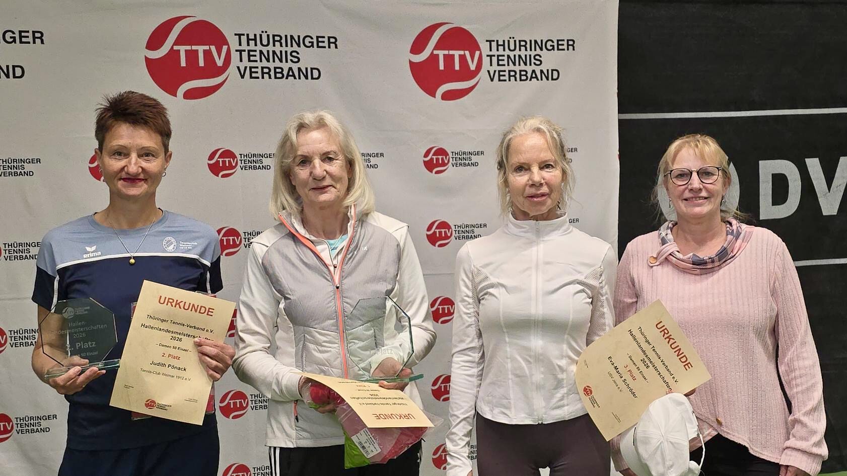 In einer Fünfergruppe setzte sich Christine Herrmann (TC Erfurt 93) ohne Satzverlust durch und belegte den ersten Platz. Judith Pönack (TC Weimar 1912) wurde Zweite, gefolgt von Eva-Maria Schröder (USV Jena) auf Rang drei.