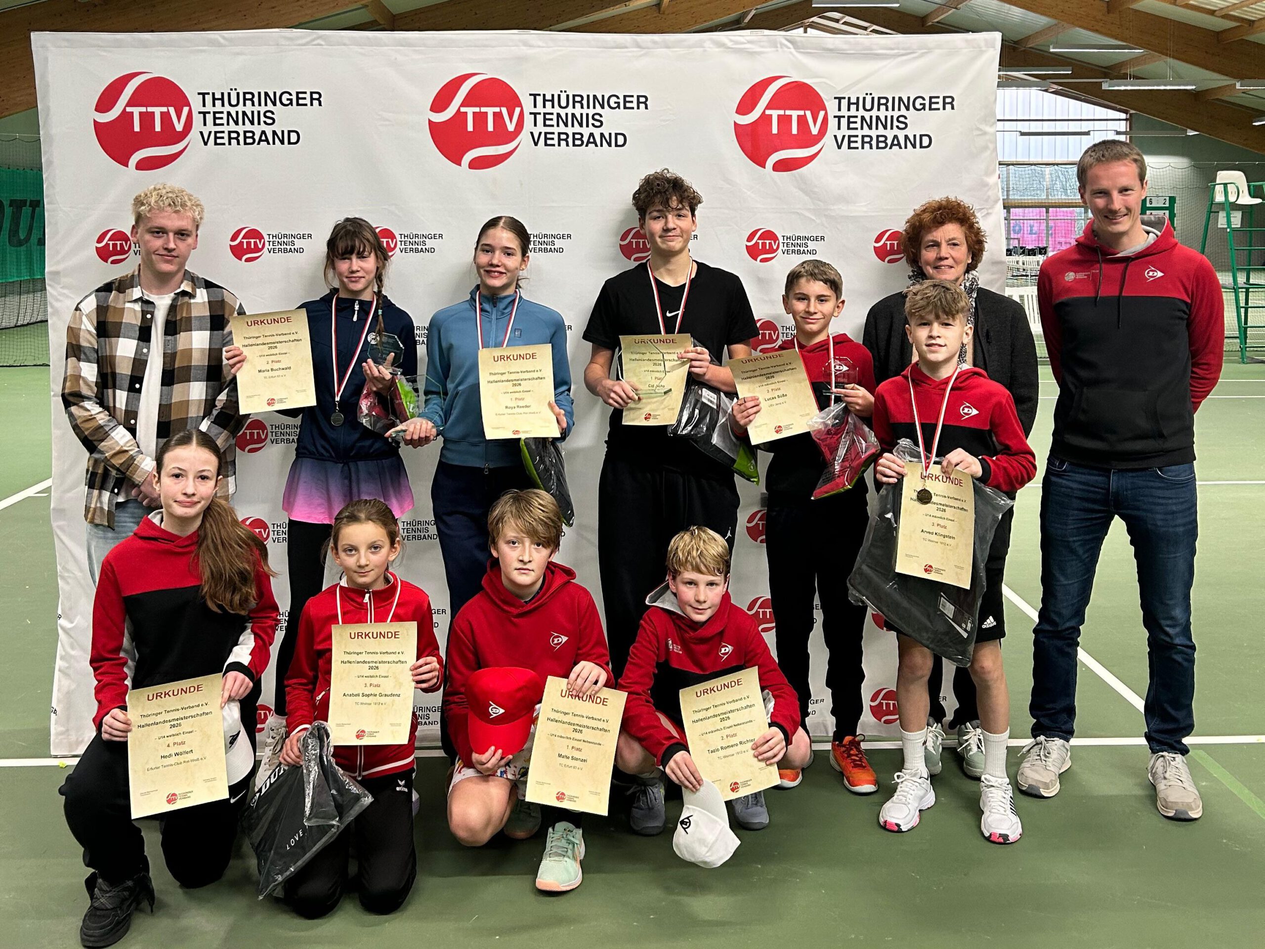 Die Hallenlandesmeisterschaften der Altersklasse U14 des Thüringer Tennis-Verbandes e.V. (TTV) wurden am vergagenen Wochenende im Landesleistungszentrum Weimar mit 14 Teilnehmern bei den Jungen und fünf Teilnehmerinnen bei den Mädchen ausgetragen. Das Mädchenfeld wurde im Gruppenmodus gespielt.